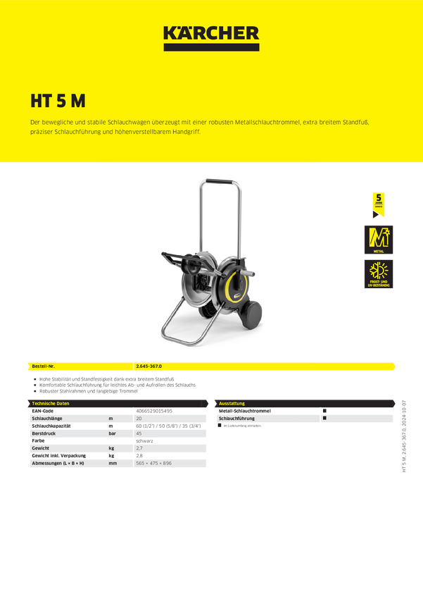 2.645-367.0 Kärcher Home & Garden 2.645-367.0 HT 5 M Bęben na wąż 1 szt. czarny