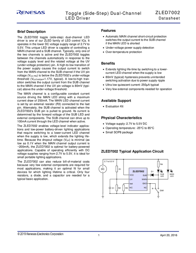 ZLED7002ZI1R Toggle (Side-Step) Dual-Channel LED Driver