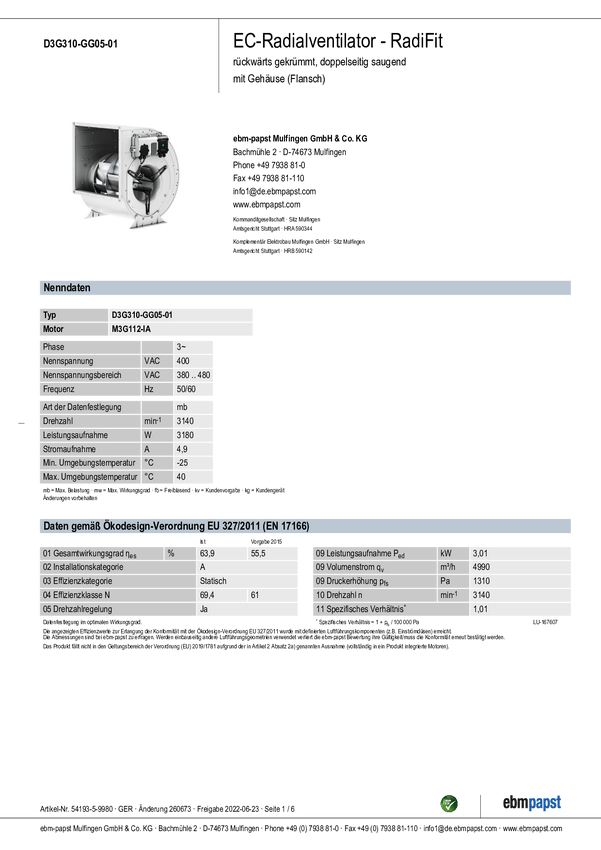 VCD0310FTRNS EBM Papst VCD0310FTRNS Wentylator promieniowy 400 V/AC 4990 m³/h 31...