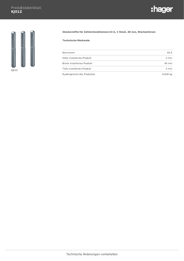 KJ01Z Hager KJ01Z Styki złącza wielobarwny 1 szt.