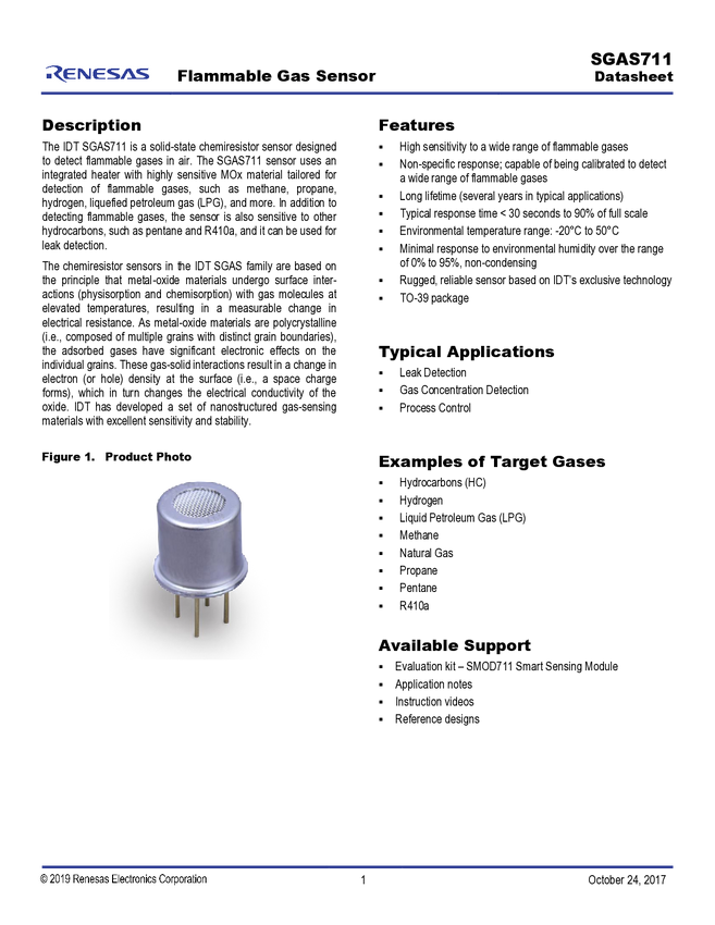 SGAS711 Flammable Gas Sensor - Methane, Propane, Hydrogen, LPG
