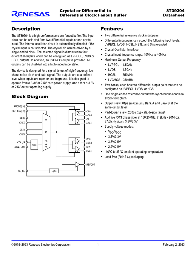 8T39204NLGI8 Crystal or Differential to Differential Clock Fanout Buffer
