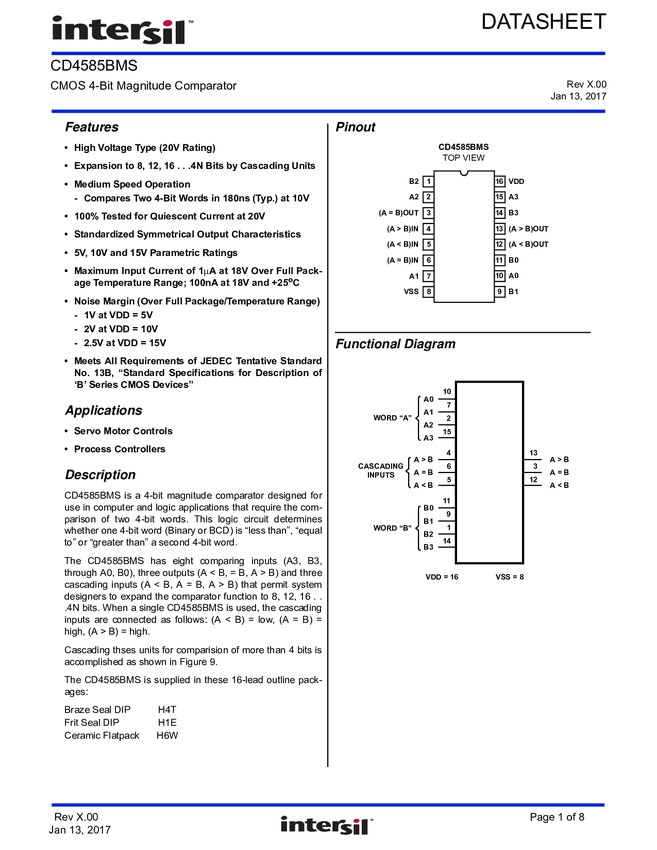 CD4585BKMSR, CD4585BMS