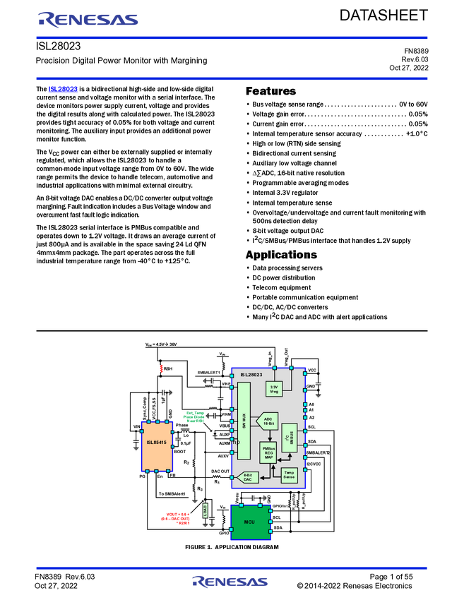 ISL28023FR60Z Precision Digital Power Monitor with Margining