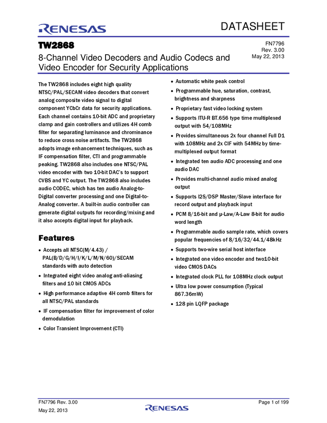TW2868-LA2-CR 8-Channel Video Decoders and Audio Codecs and Video Encoder for Security Ap...