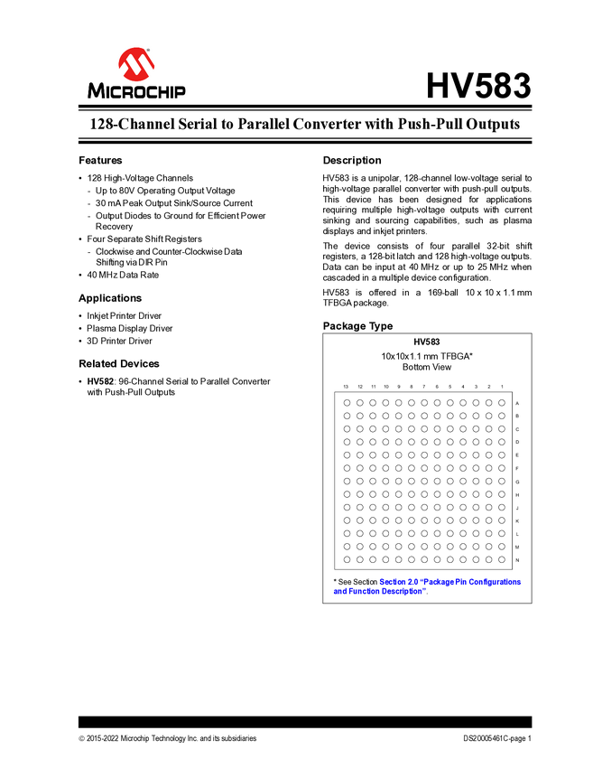 HV583 - 128-Channel Serial to Parallel Converter with Push-Pull Outputs