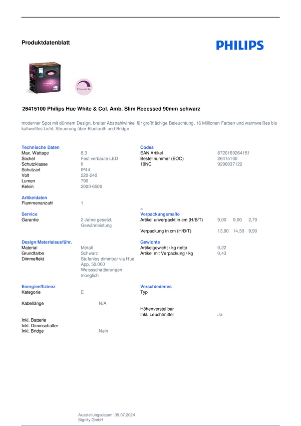 929003712201 Lampa downlight Hue Hue WCA Slim 929003712201 8.3 W