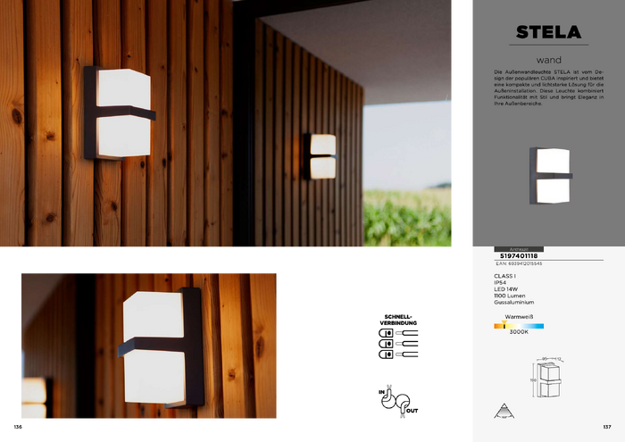 5197401118 Zewnętrzna lampa ścienna Lutec STELA 5197401118 14 W IP54