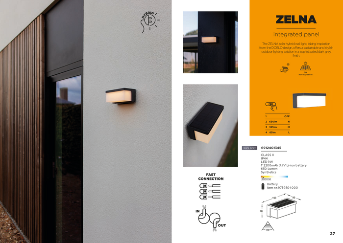 6912401345 Lampa ścienna solarna z czujnikiem ruchu Lutec ZELNA 6912401345 8.2 W IP44