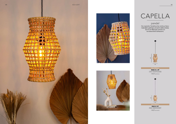 9520 S1 RT Lampa sufitowa, podwieszana ECO-Light CAPELLA 9520 S1 RT E-27 Rattan, natur...