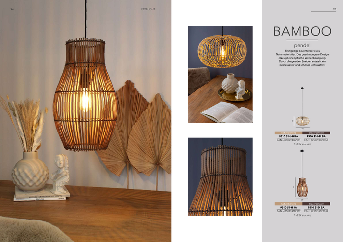 Lampa sufitowa, podwieszana ECO-Light BAMBOO 9510 S1-D BA E-27 kremowy, brązowy