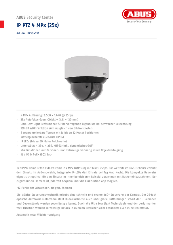 IPCS84532 Kamera monitoringu ABUS IP PTZ 4 MPx (25x) IPCS84532, 1 szt.