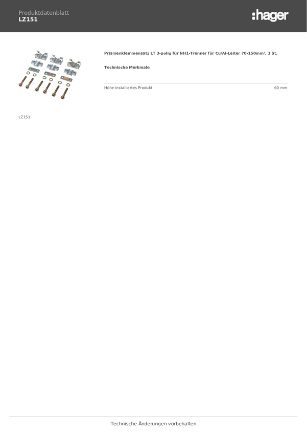 LZ151 Hager LZ151 Zestaw zacisków pryzmatu 1 szt.