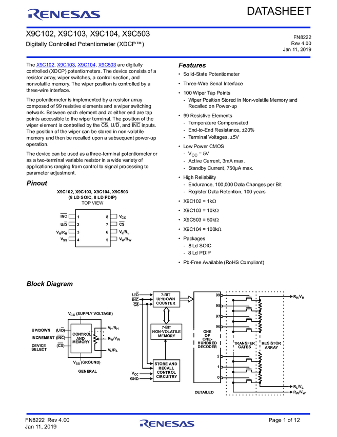 X9C104, X9C104PIZ, X9C104SIZ, X9C104SIZT1, X9C104SZT1