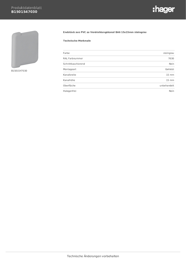 B1501547030 Element końcowy Hager Tehalit B1501547030, 1 szt.