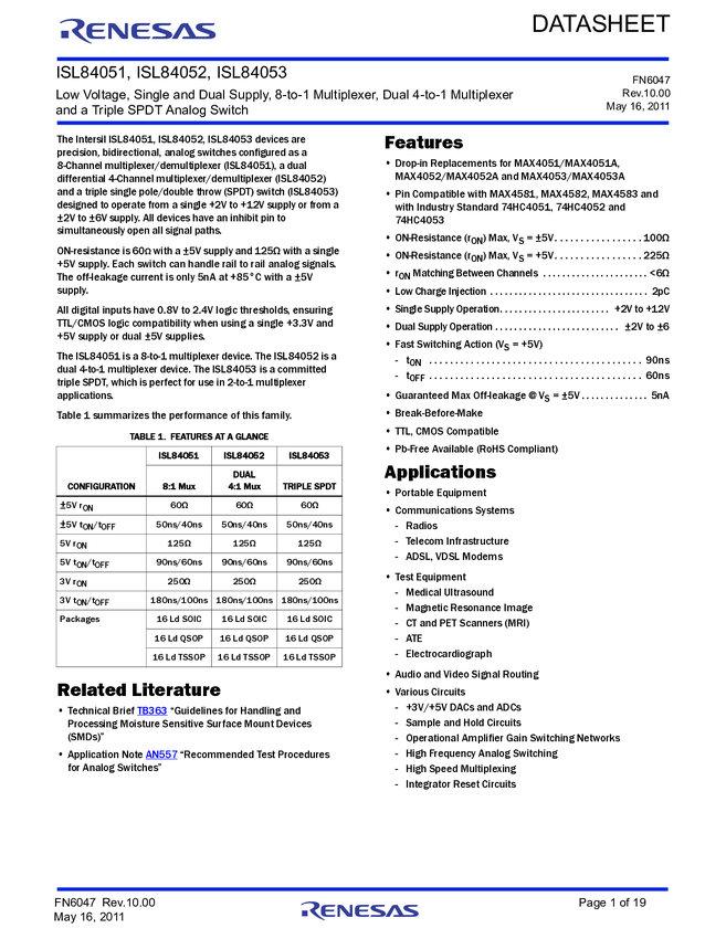 - ISL84051IAZ-T, ISL84051IBZ, ISL84051IBZ-T, ISL84051IVZ, ISL84051IVZ-T, ISL84051