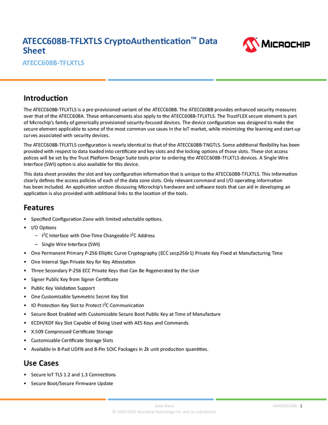 ATECC608B-TFLXTLS Cryptoauthentication™ Data Sheet