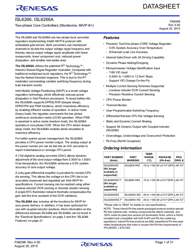 ISL6266AHRZ-T, ISL6266AIRZ, ISL6266AIRZ-T, ISL6266A