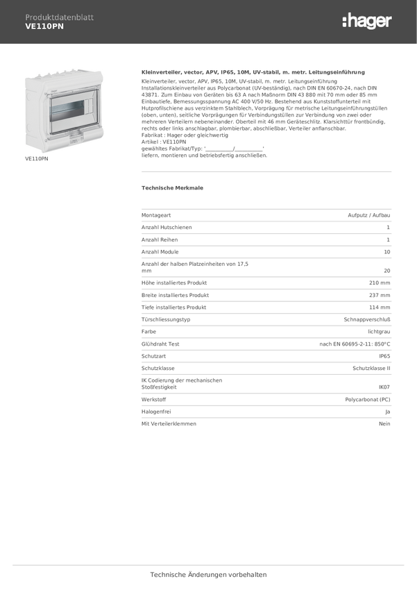 VE110PN Hager VE110PN Rozdzielnica mała nadtynkowy Ilość rzędów = 1 Content 1 szt.