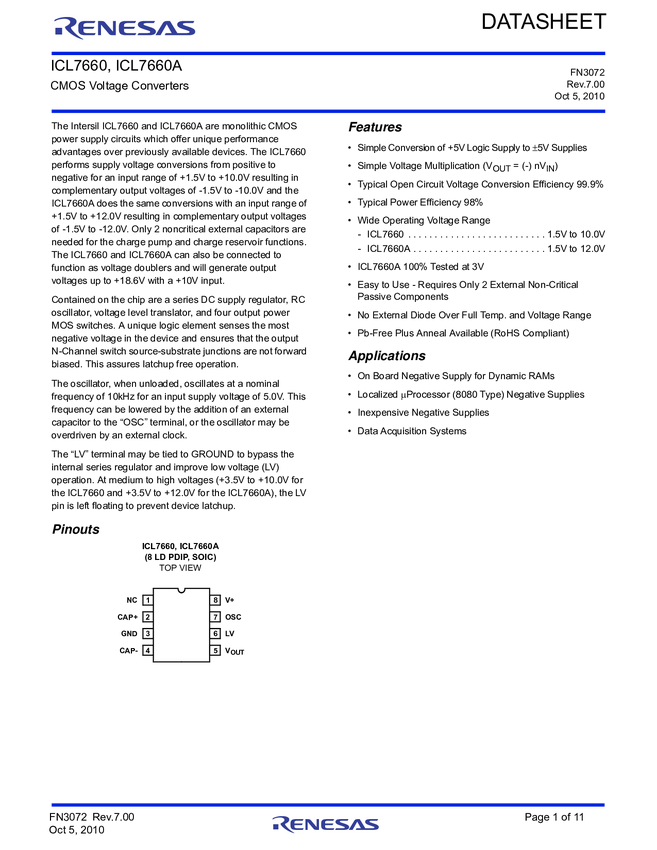 ICL7660, ICL7660CBA, ICL7660CBA-T, ICL7660CBAZ, ICL7660CBAZA, ICL7660CBAZA-T, ICL7660CBAZ-T, ICL7660CPA