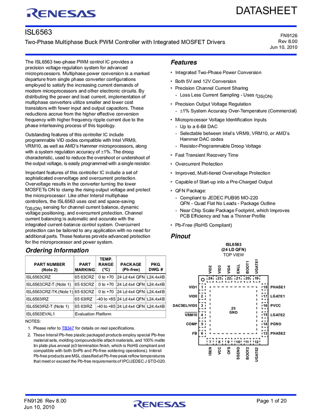 ISL6563CR-T, ISL6563CRZ, ISL6563CRZ-T, ISL6563CRZ-TK, ISL6563IR, ISL6563IR-T, ISL6563IRZ, ISL6563IRZ-T, ISL6563
