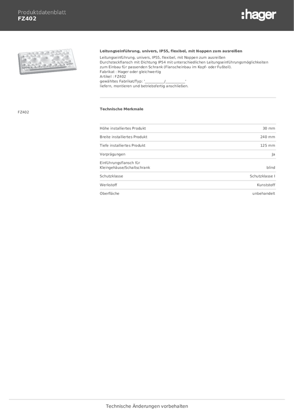 FZ402 Hager FZ402 Wejście kablowe tworzywo sztuczne wielobarwny 1 szt.