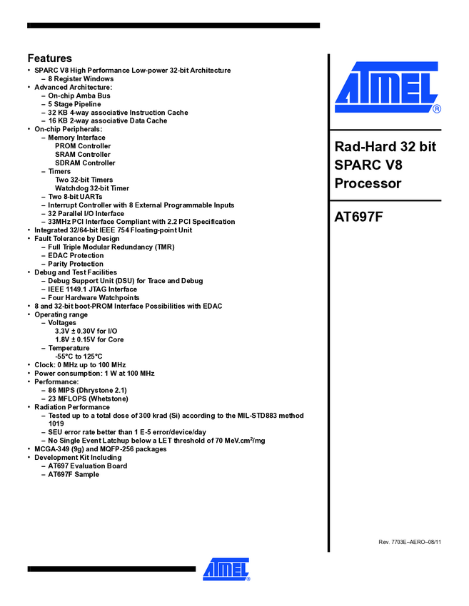AT697F Rad-Hard 32 bit SPARC V8 Processor - Complete Datasheet