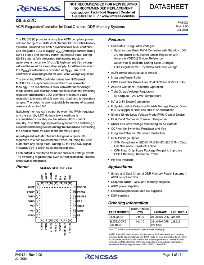 ISL6532CCR-T, ISL6532CCRZ, ISL6532CCRZ-T, ISL6532C