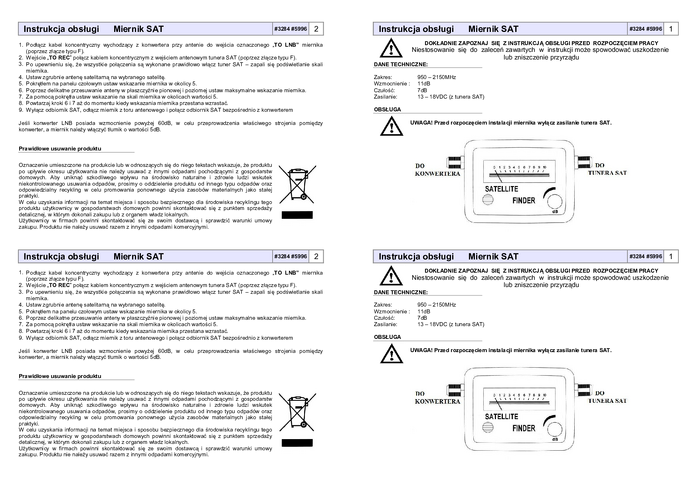5996/R Miernik sygnału satelitarnego; SAT; SF-9501; wskaźnik analogowy; 950-2150 M...