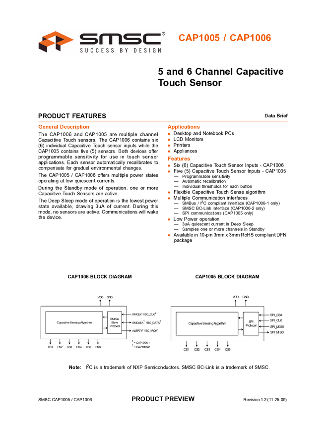 CAP1005/1006 5 and 6 Channel Capacitive Touch Sensor Data Brief - CAP1005/1006 5 and 6 Channel Capacitive Touch Sensor Data Brief