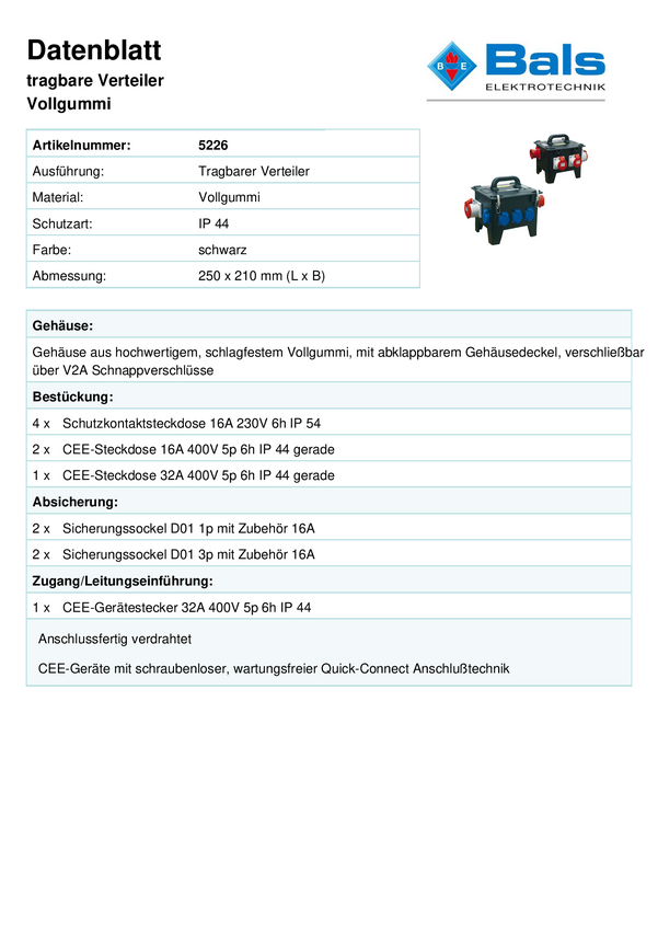 5226 Bals Elektrotechnik Rozdzielacz prądowy CEE 5226 5226