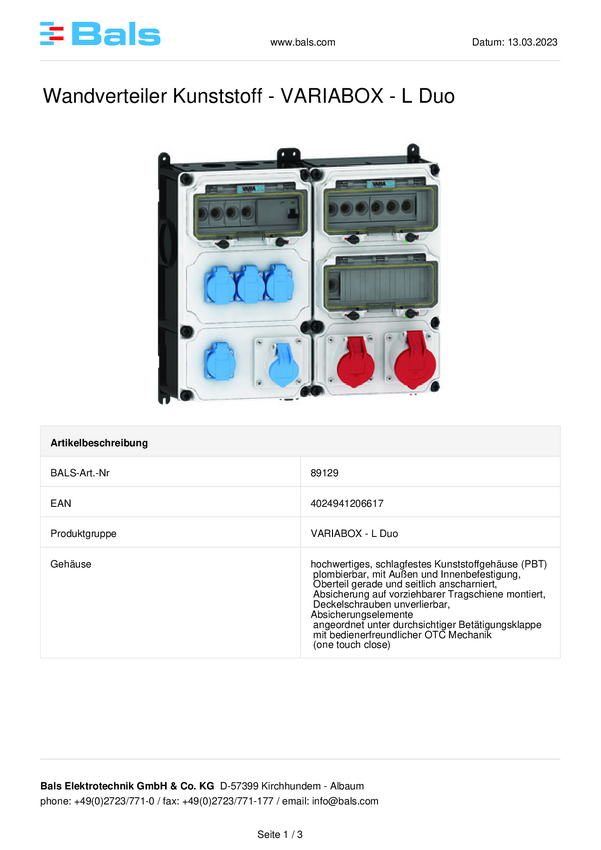 Rozdzielacz prądowy CEE Bals Elektrotechnik 89129
