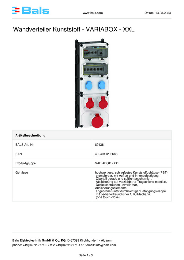 Bals Elektrotechnik Rozdzielacz prądowy CEE 89136 89136