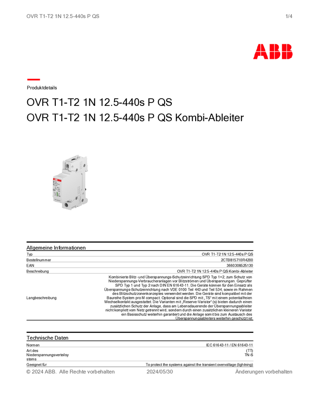 2CTB815710R4200 Ogranicznik przepięć ABB 2CTB815710R4200 1 szt.