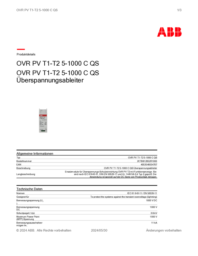 2CTB812052R1000 Moduł zamienny ochronny ABB 2CTB812052R1000 1 szt.