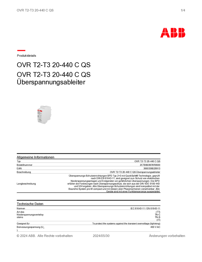 2CTB803876R0600 Moduł zamienny ochronny ABB 2CTB803876R0600 1 szt.