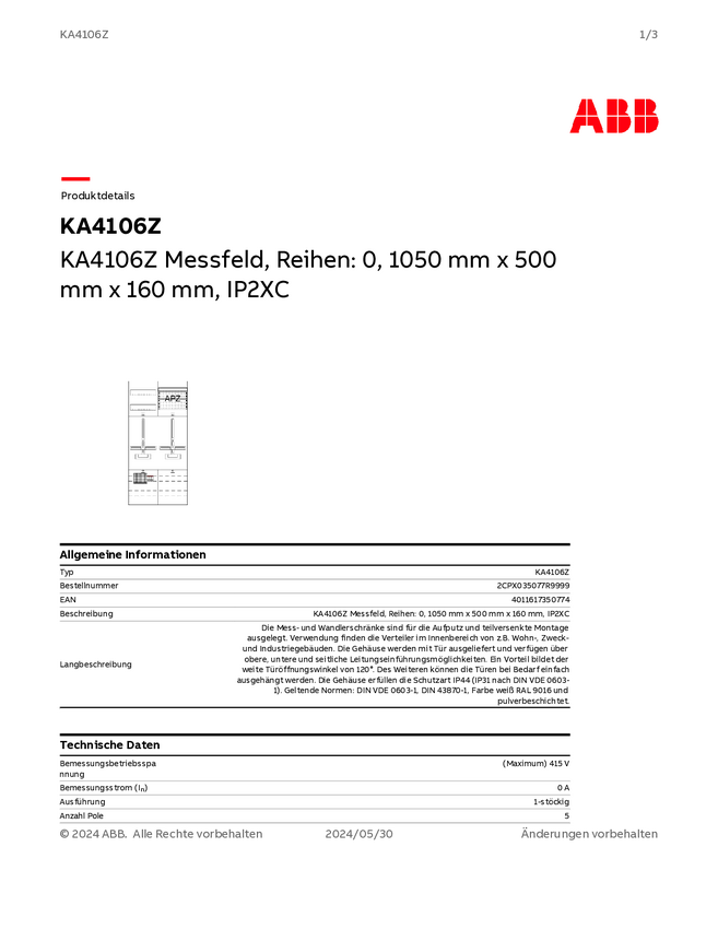 2CPX035077R9999 Pole pomiarowe Striebel & John KA4106Z 2CPX035077R9999, 500 mm x 1050 m...