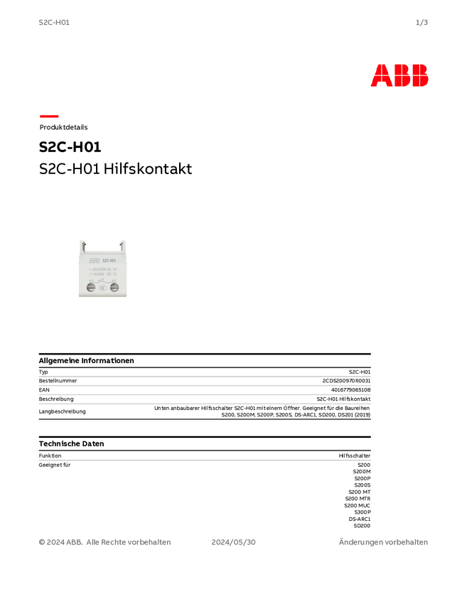 2CDS200970R0031 Przełącznik pomocniczy ABB 2CDS200970R0031 1 szt.