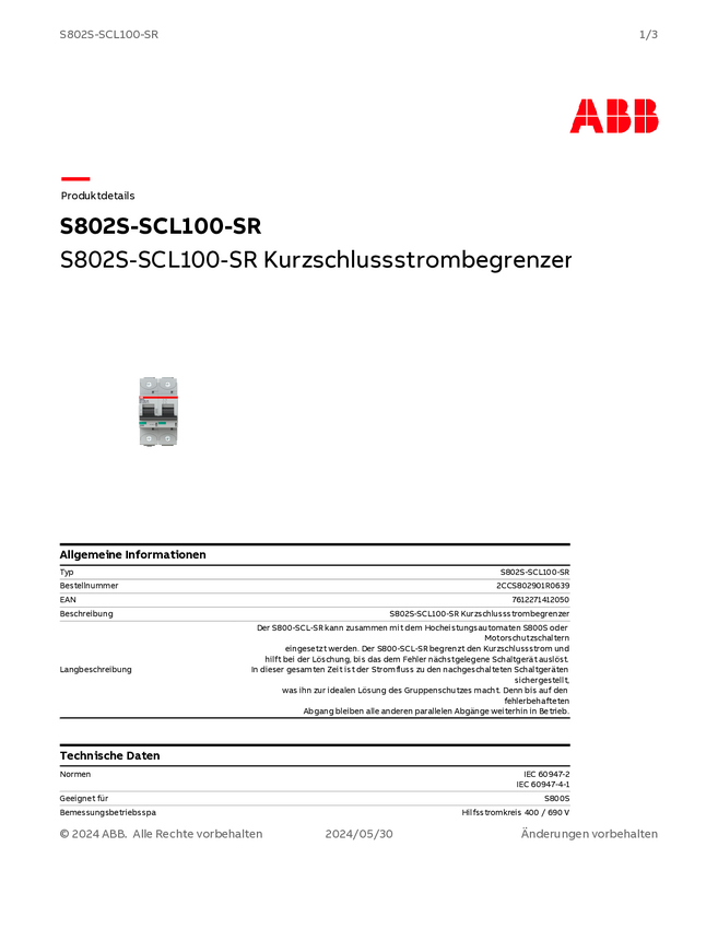 Ogranicznik prądu zwarciowego ABB 2CCS802901R0639 1 szt.