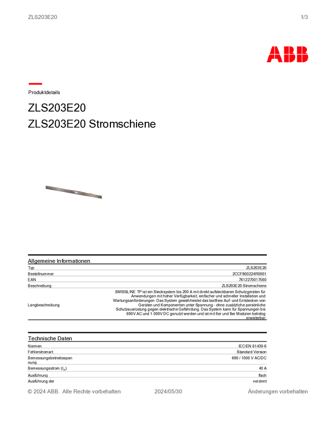 2CCF800224R0001 ABB 2CCF800224R0001 Szyna prądowa 1 szt.