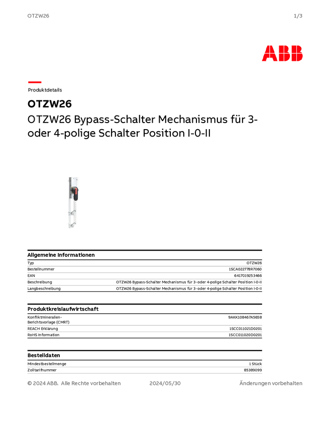 1SCA022778R7060 ABB 1SCA022778R7060 Przełącznik obejściowy 1 szt.
