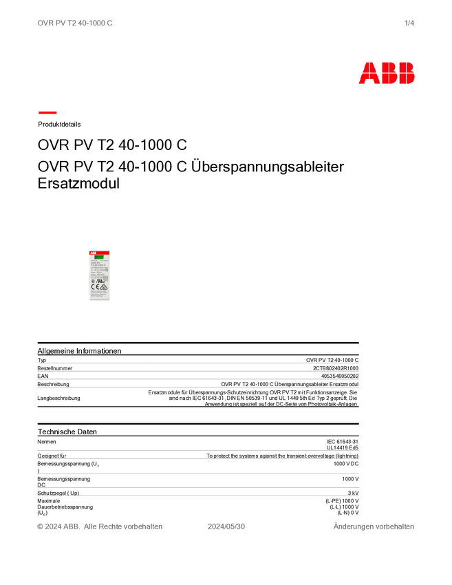 2CTB802402R1000 Moduł zamienny ochronny ABB 2CTB802402R1000 1 szt.