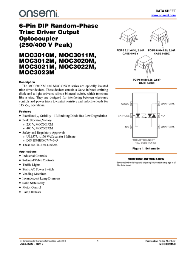 MOC3023M, MOC3021M, MOC3020M, MOC3012M, MOC3011M, MOC3010M