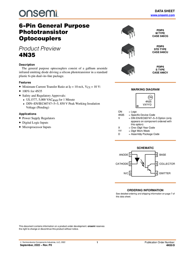 6-Pin DIP Package Phototransistor Output Optocoupler