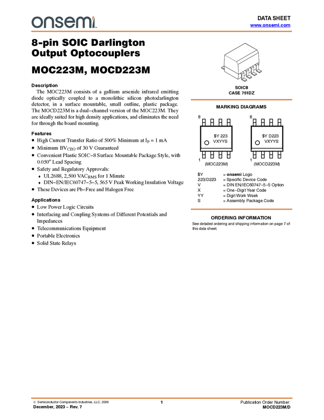 MOC223M 8-pin SOIC Darlington Output Optocouplers