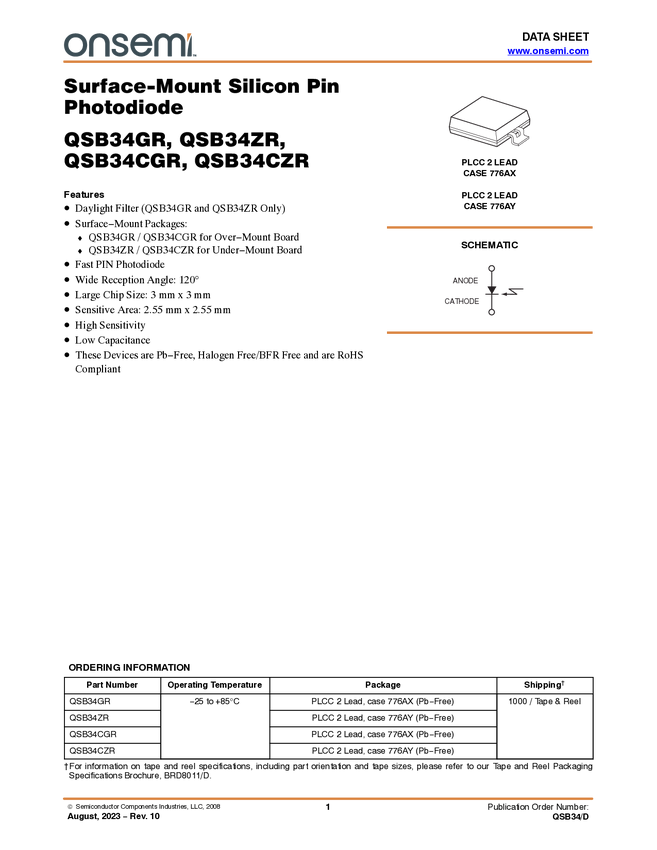 QSB34 Surface Mount Silicon Infrared PIN Photodiode