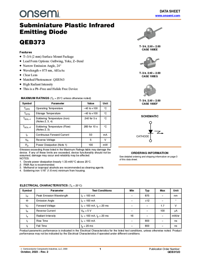 QEB373 Subminiature Plastic Infrared Emitting Diode