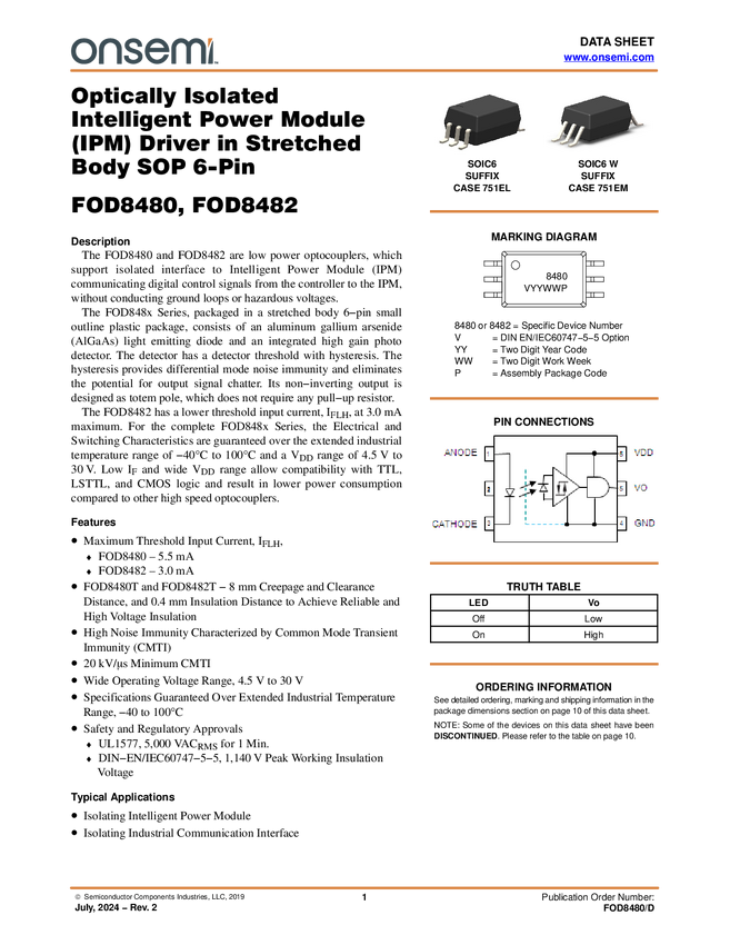 FOD8482 Optically Isolated Intelligent Power Module (IPM) Driver in Stretched Body...