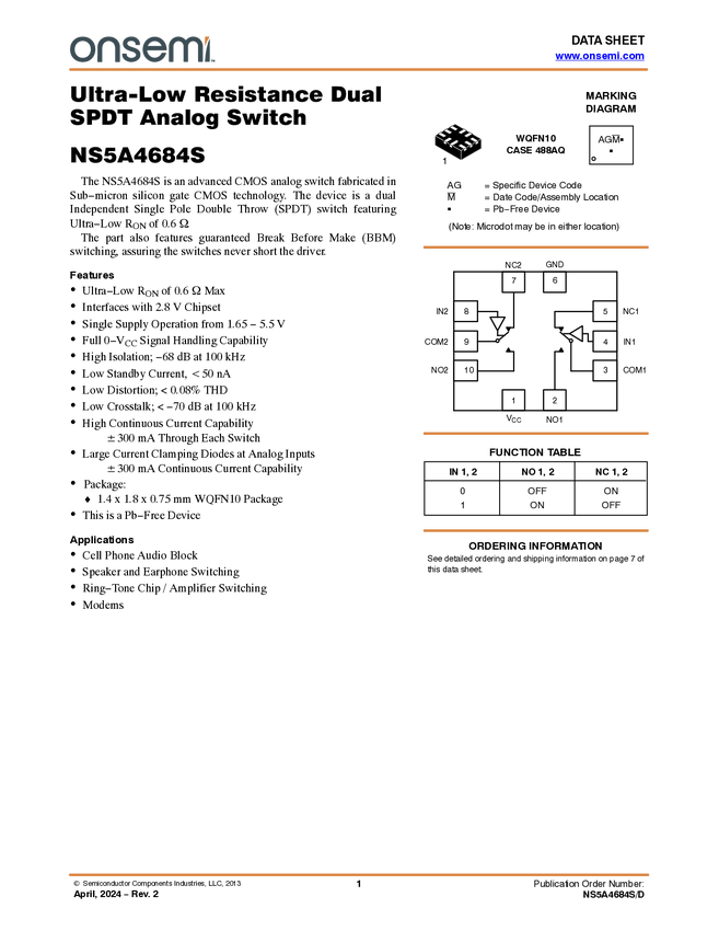 NS5A4684S Analog Switch, Dual SPDT, Ultra-Low Resistance