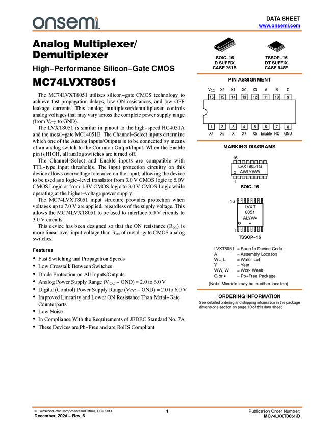 MC74LVXT8051 Analog Multiplexer/Demultiplexer (Mux/Demux)